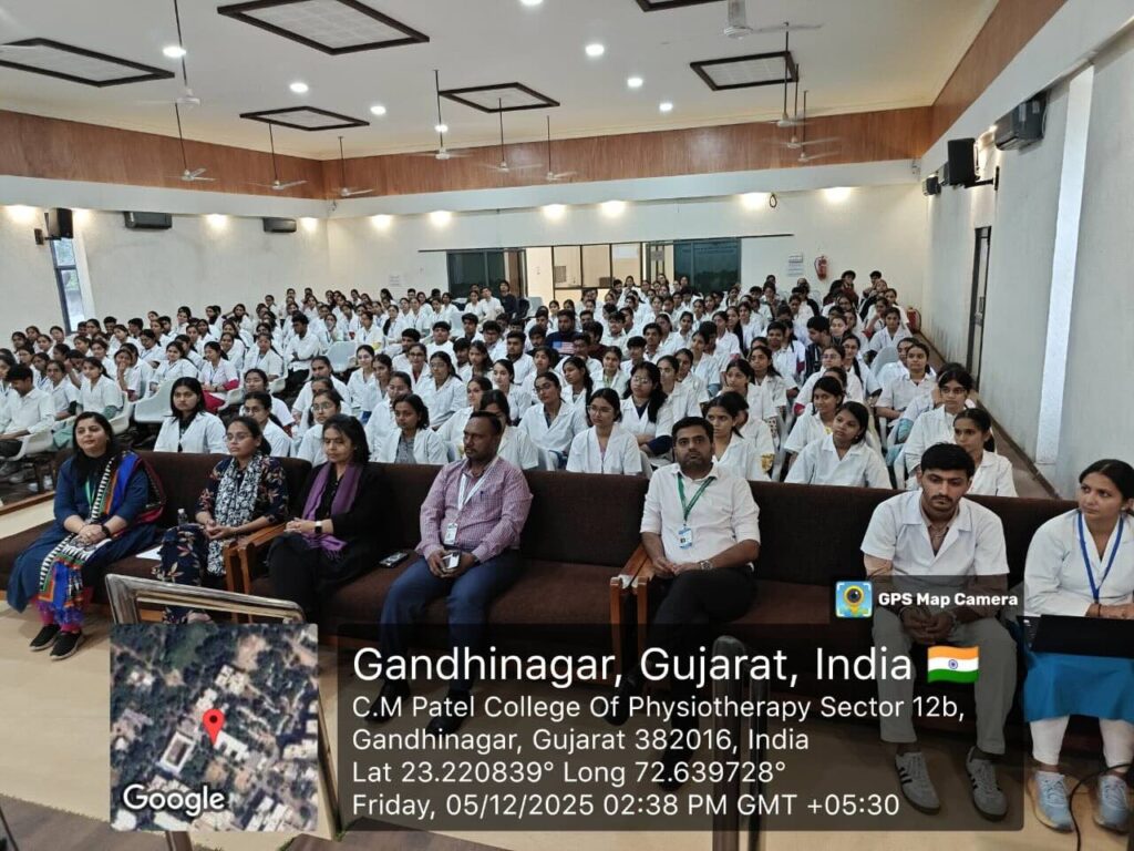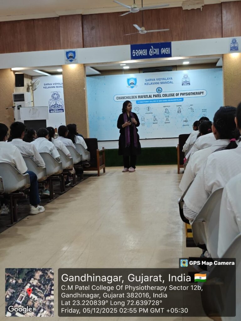 An Orientation Program introducing the Department of International Relations (DiR), SVKM, Communication Skills and iSEP Cell, KSV, and the Mental Health and Wellbeing Cell, SVKM was organized on 05th December 2025 at the Shardaben Bhagubhai Patel Sankul Auditorium, Sector-12, Gandhinagar for the students of C.M. Patel College of Physiotherapy.